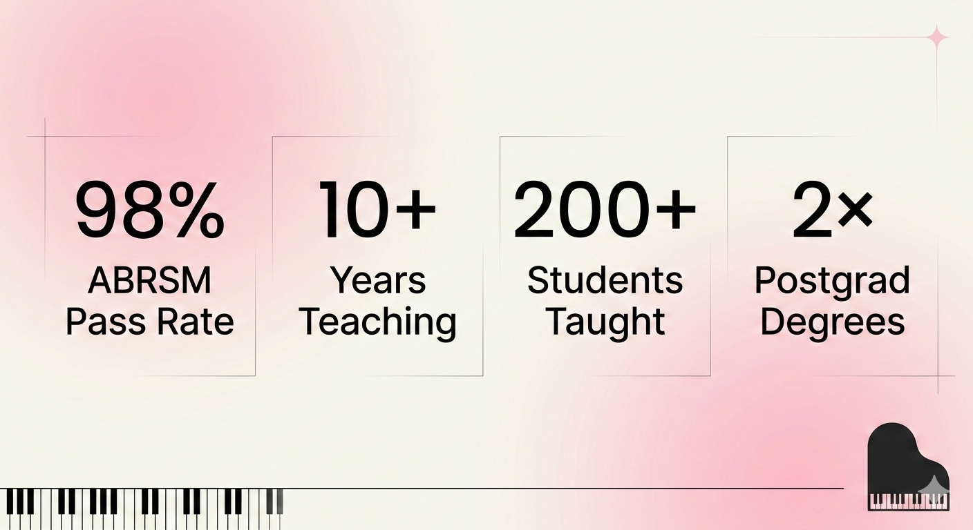A track record built on genuine outcomes . Not just certificates, but students who love music long after their last lesson.
