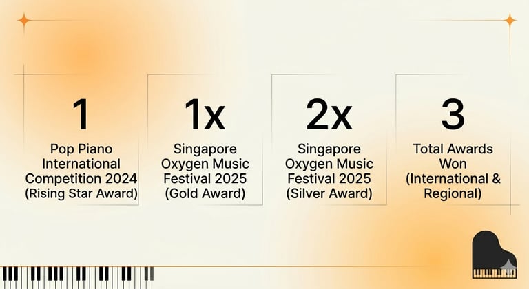 Structured ABRSM graded syllabus from Grade 1 to Grade 8 and beyond. Josephine's pedagogy background means students don't just pass — they understand the music they play.